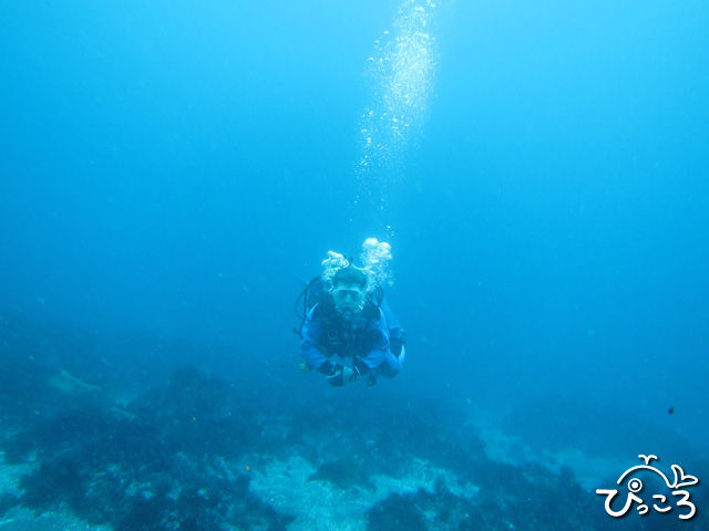 季節外れの強い西風に透明度は若干落ちてしまいましたが、水温は19℃。