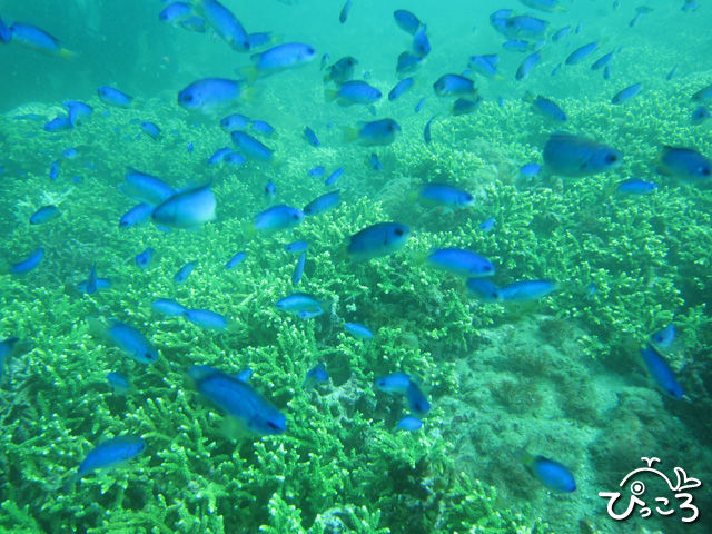 サンゴのグリーンと、ソラスズメダイのブルーがキレイでした!