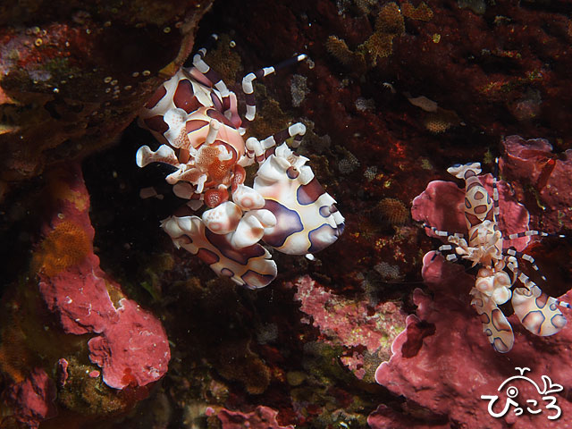 人懐っこいコブダイが、フリソデエビを探しているグループの周りをウロウロ。