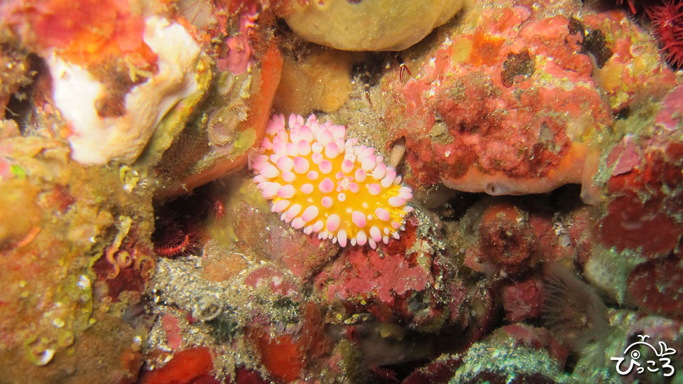 黄色に白とピンクでとってもカラフルなイガグリウミウシ。