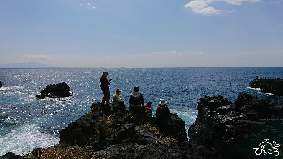 麓のさくらの里からプリン型のスコリア丘を眺め、その後大室山噴火の産物である城ヶ崎海岸へ。