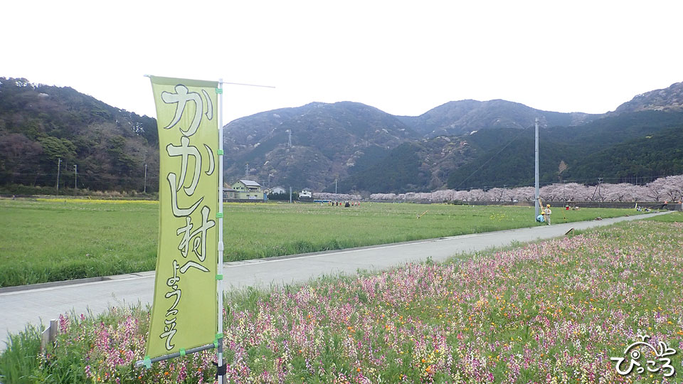 お宿の目の前には、松崎町の田んぼのお花畑。