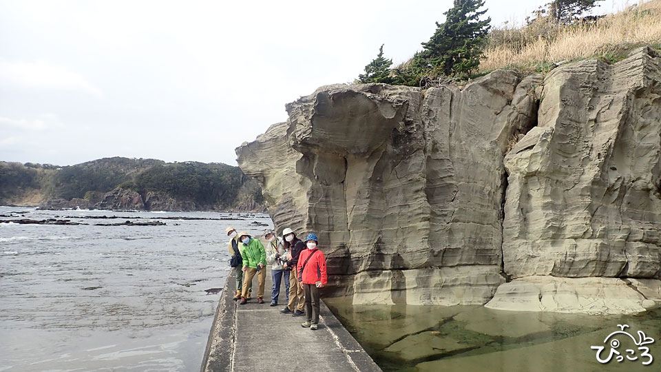 下調べをしたゲストさんよりポットホールのリクエスト。ということで、まずはかんのんの浜へ。