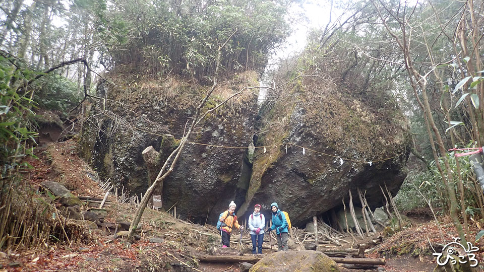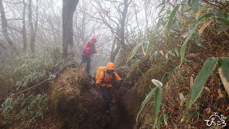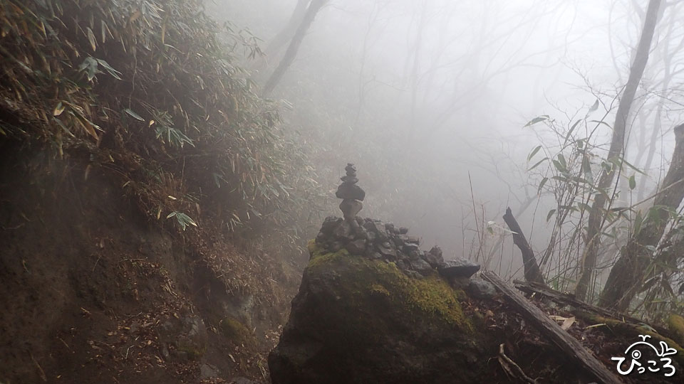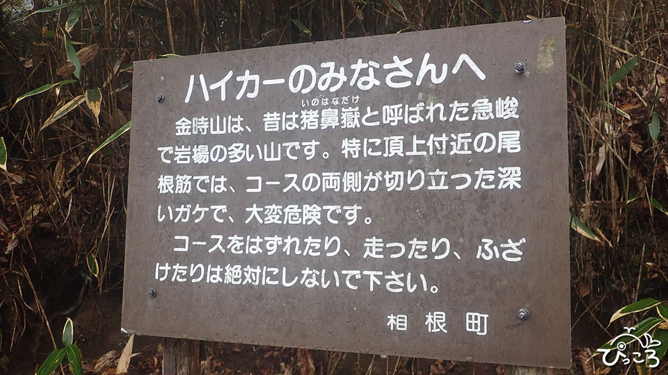 稜線は岩場が出てきて、こんな注意書きの看板がありました。