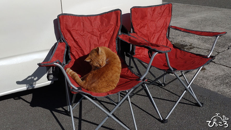 休憩用に出しておいたチェアには、ちゃっかり先約が。
