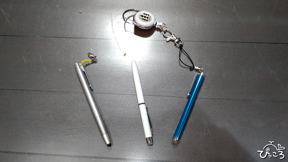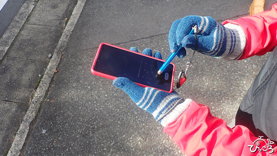 グローブを外した時の紛失防止にゴムひもリーシュとスマホ操作に便利なタッチペンをお忘れなく。