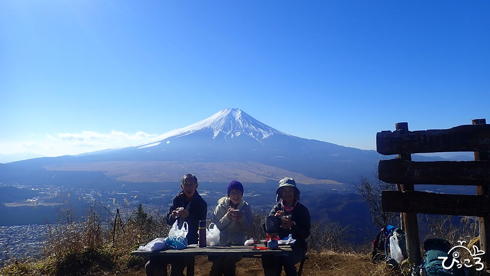 カップラーメンや味噌汁など温かいものでランチをとり、下山は乙女峠方面へ。