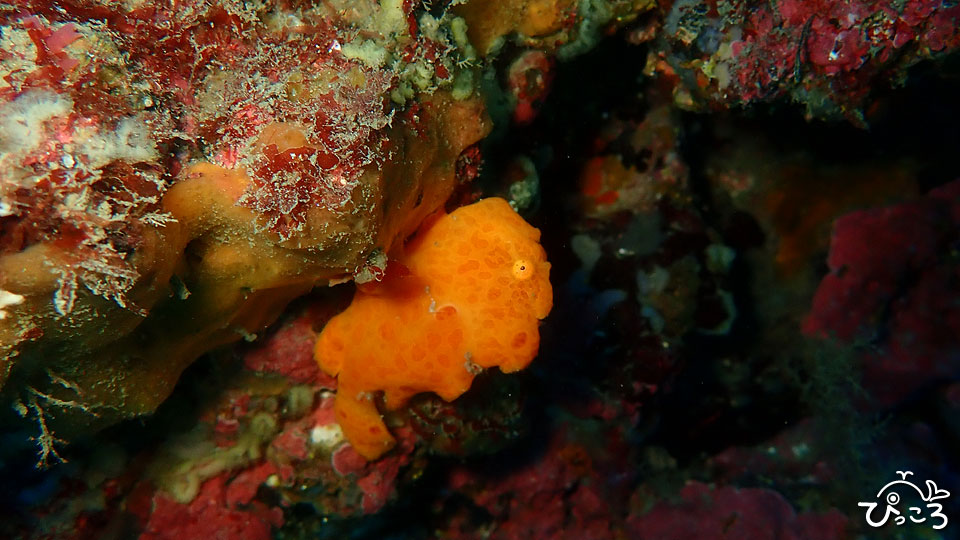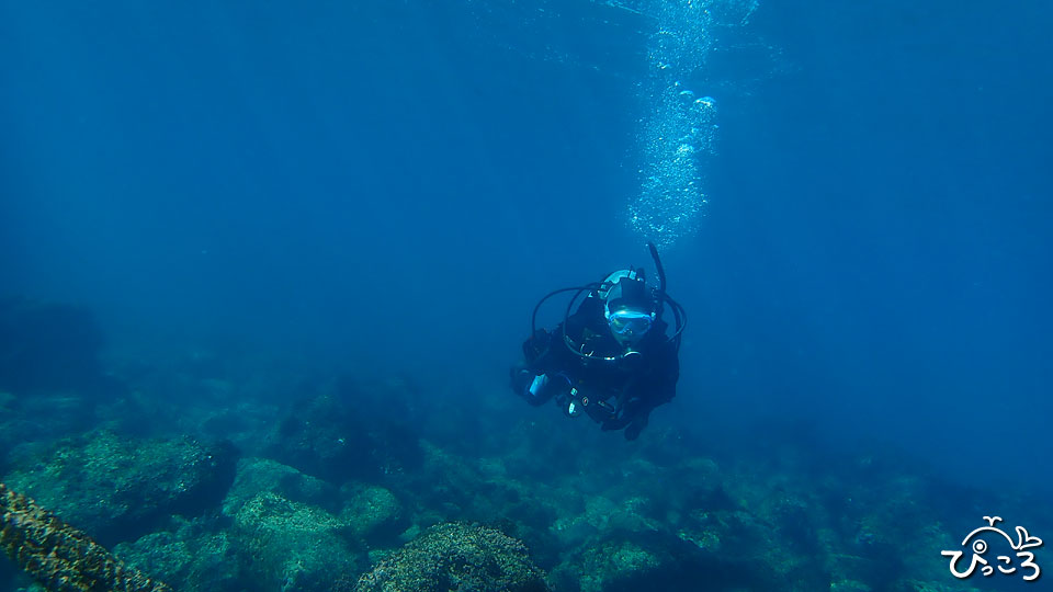 水温は16℃、ドライスーツとフード、ウインターグローブで快適ダイビング。