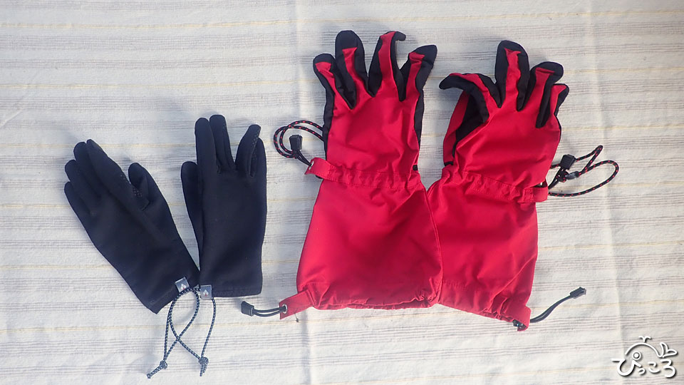 薄手のフリースやニットの手袋+風や雨を除けるオーバーグローブが使い勝手が良いです。