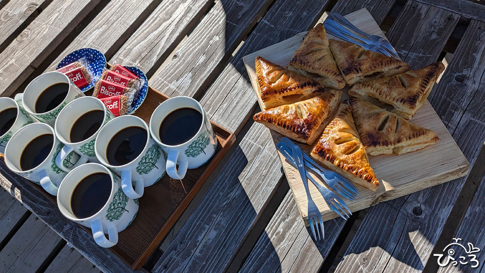 女性に人気の山小屋では、薪ストーブで焼いたピザやアップルパイが大人気。