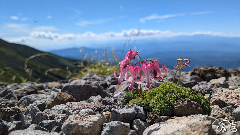五の池小屋の周囲にはコマクサのお花畑。